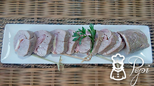Una vez acabado el tiempo, retire papel film (si le gusta más dorado ponga el solomillo en el horno unos 10 min aproximadamente en función grill)